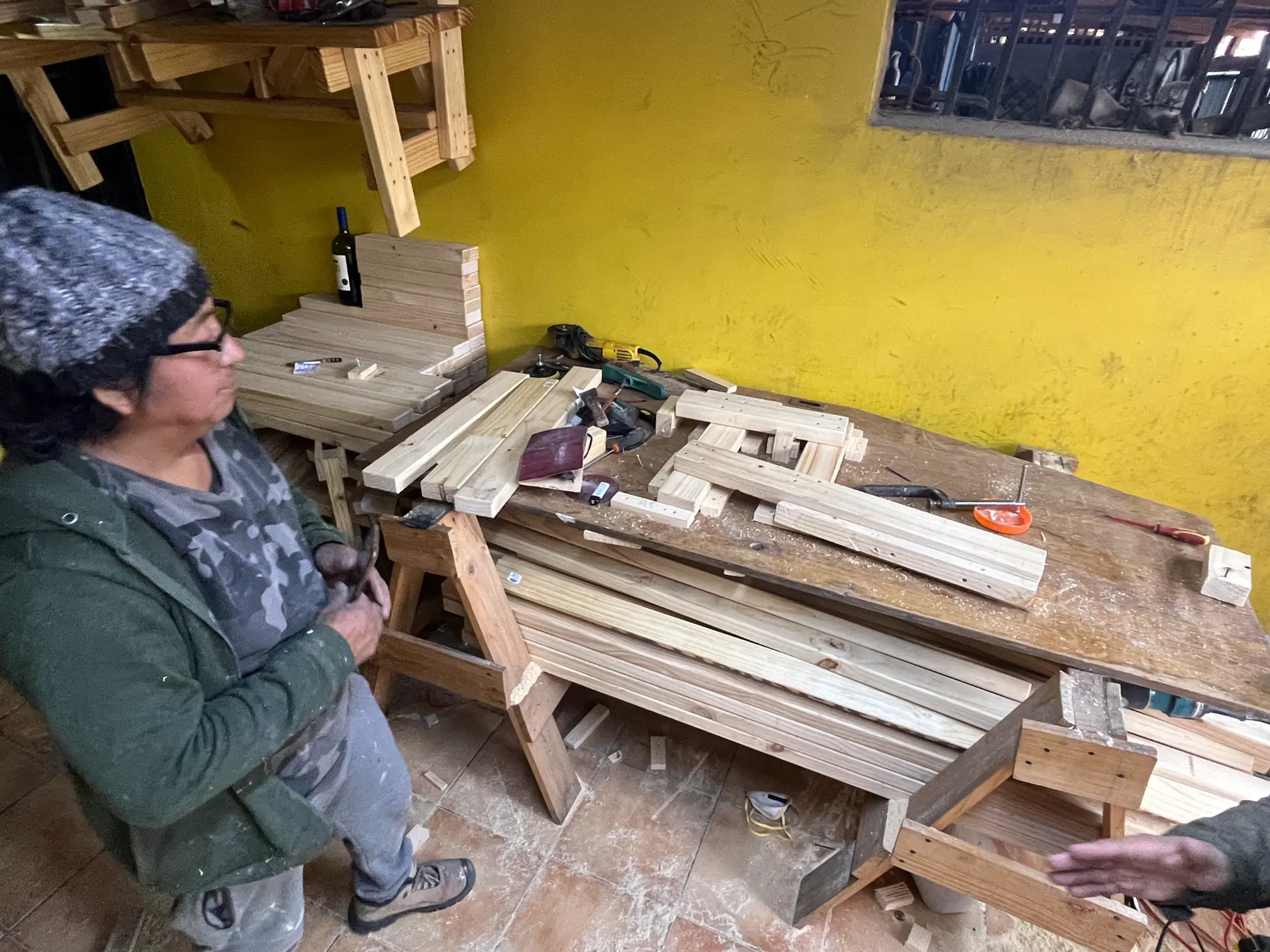 Bajo la metodología de una residencia de creación durante el año 2024, un grupo de carpinteros vecinos de La Granja desarrolló junto a la Escuela de oficios museográficos del mim, una serie de piezas que hoy forman parte del mobiliario habitual del museo.