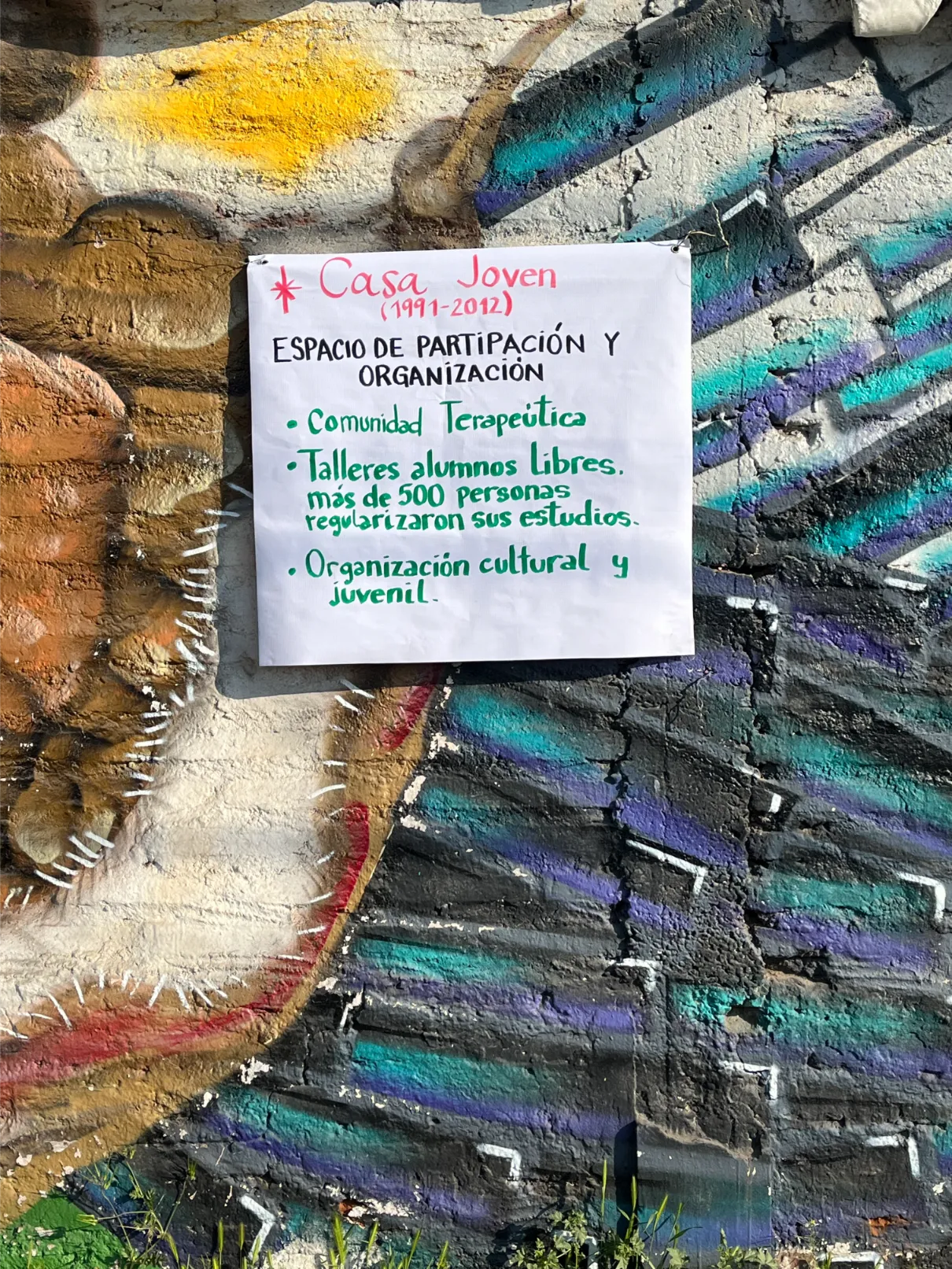 Esta iniciativa fue un punto de partida para conocer los patrimonios y memorias del territorio donde se encuentra el mim. Su relato, destaca la organización social como un saber que puede entenderse como una práctica regenerativa, debido a que posibilita la vida mediante la autogestión de la vivienda y la salud integral de las personas.